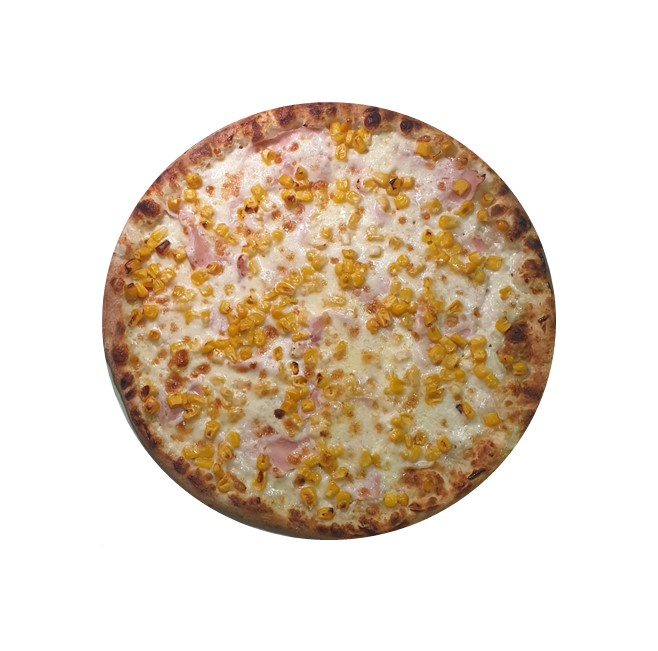 aluat pizza cu dospire lenta de minim 48 de ore, smantana lichida, sunca, porumb, mozzarella Fiore di Latte
